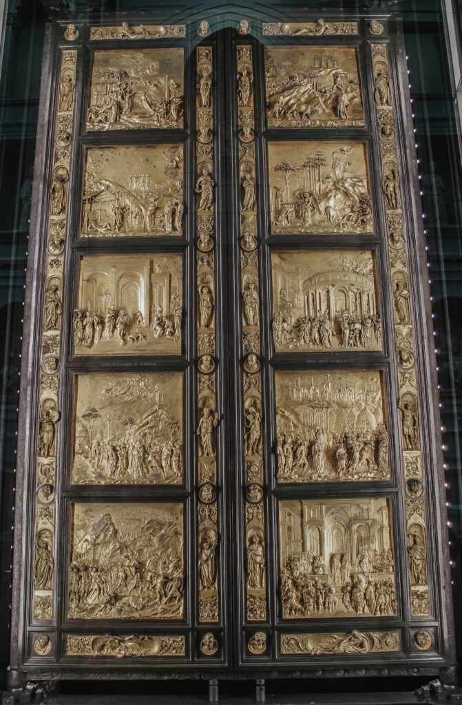 This is one of my favorite parts of Florence because of the beautiful Gates of Paradise and their history. So back in the day (1401 to be exact), there was a big competition for the commission of designing the baptistery’s doors. After a preliminary round, a jury chose seven artists as semifinalists. Some of these were Donatello, Filippo Brunelleschi (see number 2), and Lorenzo Ghiberti. Ghiberti ended up winning the commission which was pretty big deal since he was only 21. By the time he was done with the doors, he was twice as old as when he started. The panels are New Testament scenes from the life of Christ. The detail on each one is spectacular. I suggest if you’re heading to see the David early in the morning and the baptistery is on the way, pause to get a good look since later in the day, crowds can block you from getting a nice close-up view of the doors.