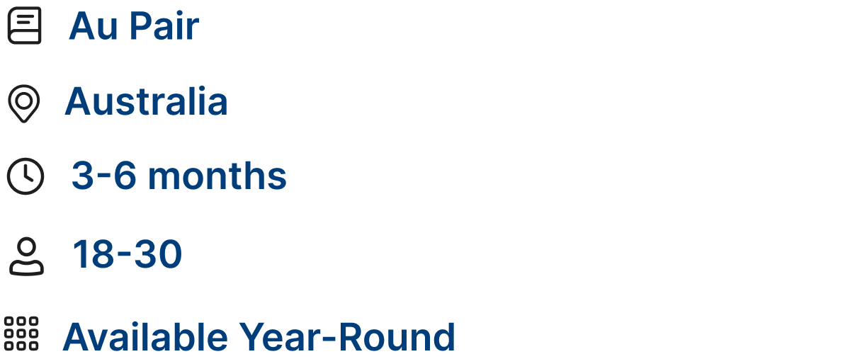 Connect with your host family in Australia through a video call to go over your role, weekly schedule, and stipend. You’ll also complete a short online training so you’re prepared for what to expect. We’ll guide you through the visa process step by step, making sure everything’s in place before you board your flight.