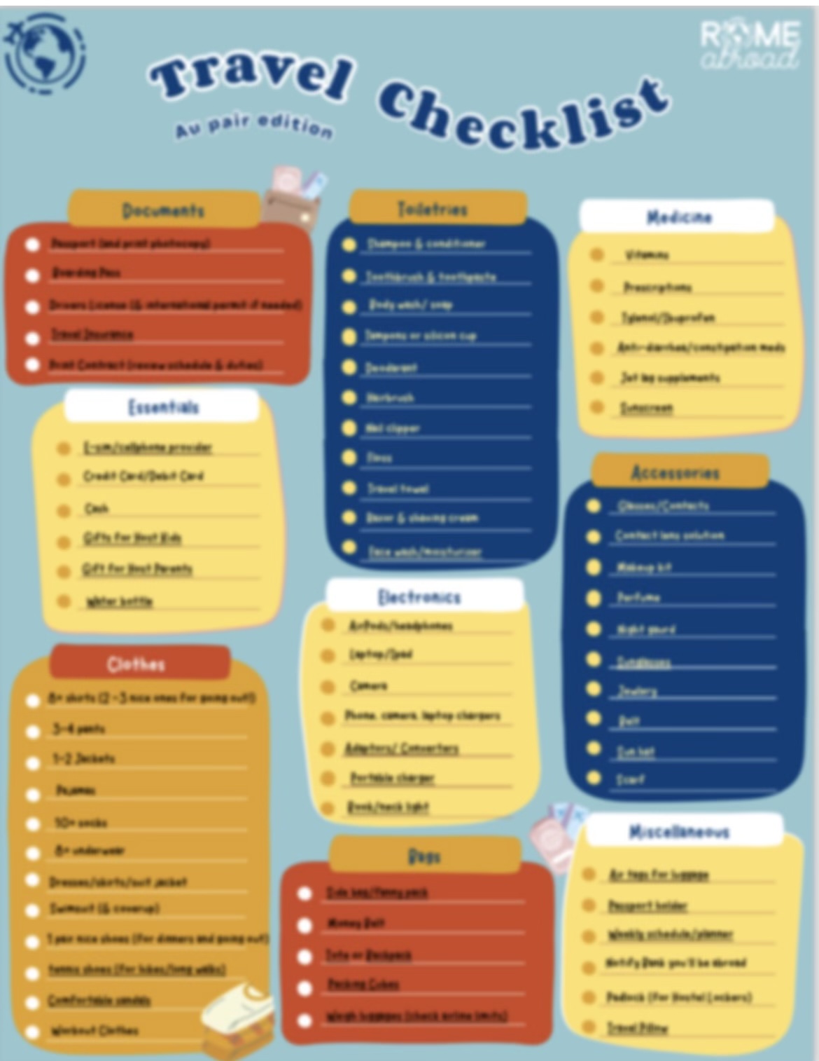 Travel Checklist crafted for au pairs, ensures readiness for your adventure in Europe. Covering travel documents, childcare essentials, and more.